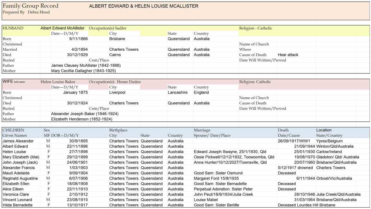 Albert and Helen were to have thirteen children all born in Charters Towers within twenty-two years between 1895 and 1917.