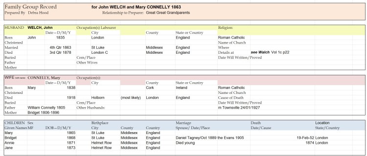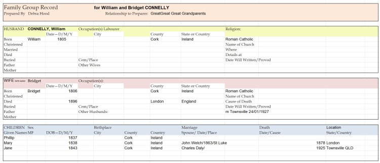 | GGG Grandparents | William & Bridget Connelly | 1836? |