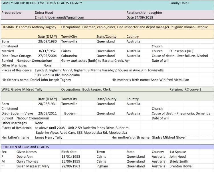The Following are organised as Family Group Records working backwards from the generation before me. I hope to add FGR for my aunts and uncles here too eventually.