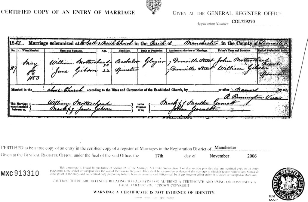 DEATH CERTIFICATE OF WILLIAM MOTTERSHEAD FATHER OF MARY JANE