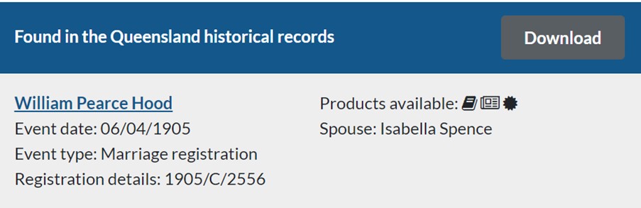William Abraham/Pearce Hood was born in NSW. He was the younger brother of Robert James Hood. I believe the brothers moved to Queensland in 1889. Their uncle William Charles Maund who married Sophie Ezzy had moved to North Queensland around 1871.