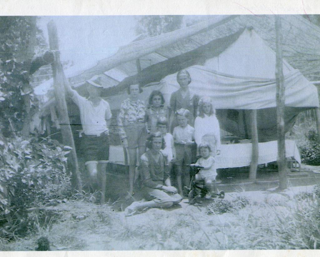 When the war came Jack took his wife and small children to a campsite where they lived in a tent. Joy recollects that the first camp was called 27 Mile – probably Blue Water today. It was Jack’s job to guard the bridges. In 1939 Joy would have been eleven and remembers taking the rail motor to school, problably Bohlevale State School. Joy remembers that Ann would take the children to Townsville by railmotor and stay with either her mother in Railway Estate or with Dot, her younger sister.