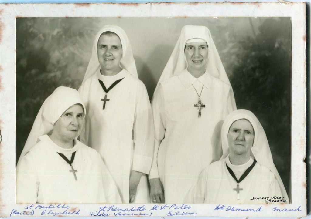 As a child, Jack attended Mt Carmel College. I imagine his brothers and sisters also attended one of the three Catholic Schools in town. The first Catholic school was established by the Sisters of Mercy in St Columba Catholic church in 1876 with 106 females and 52 males enrolled. In 1882 the same order established St Mary’s College and in 1902 the Christian Brothers established a school for boys, Mt Carmel College. The order of the Good Samaritans took over administration of the former schools in 1900. This may explain why three of the McAllister women joined this order.