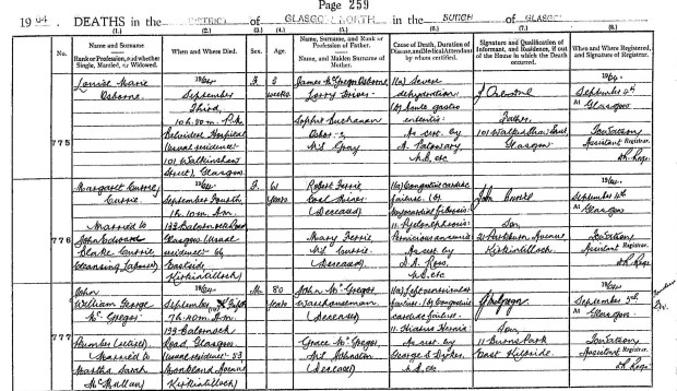 Martha died in 1975 in Kirkintiloch. She was eighty-two years old.
