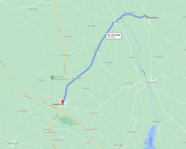 Some time between 1911 and 1915 Mary Ellen McMullan met Matthew Convery. At the 1911 Census Matthew was living in Maghera with his parents, his brother and three sisters. His father and he were blacksmiths and his brother a farmer. He was 22 years old. It is an hour by bicycle from Maghera to Rosharkin and I don’t know when or how Mary Ellen and Matthew met but they did. At the time Ireland had about three million people and most employed in agriculture. The area around Maghera had a lot of linen production