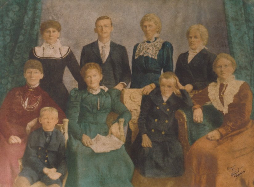 The image above was most probably taken in Charters Towers at the time of Sophie’s wedding to William Hector Glover in 1901. I am guessing a few- particulaly Elsie, Tina and Annie. Standing L to R Sophie 19, Ole 17, Olette 24, Elsie 29. Seated L to R Tina 22, Thor Jens 9, Anna Marie 49, Rebecca 9 (My grandmother said she had her head shaved as a result of head lice) and Annie 17.