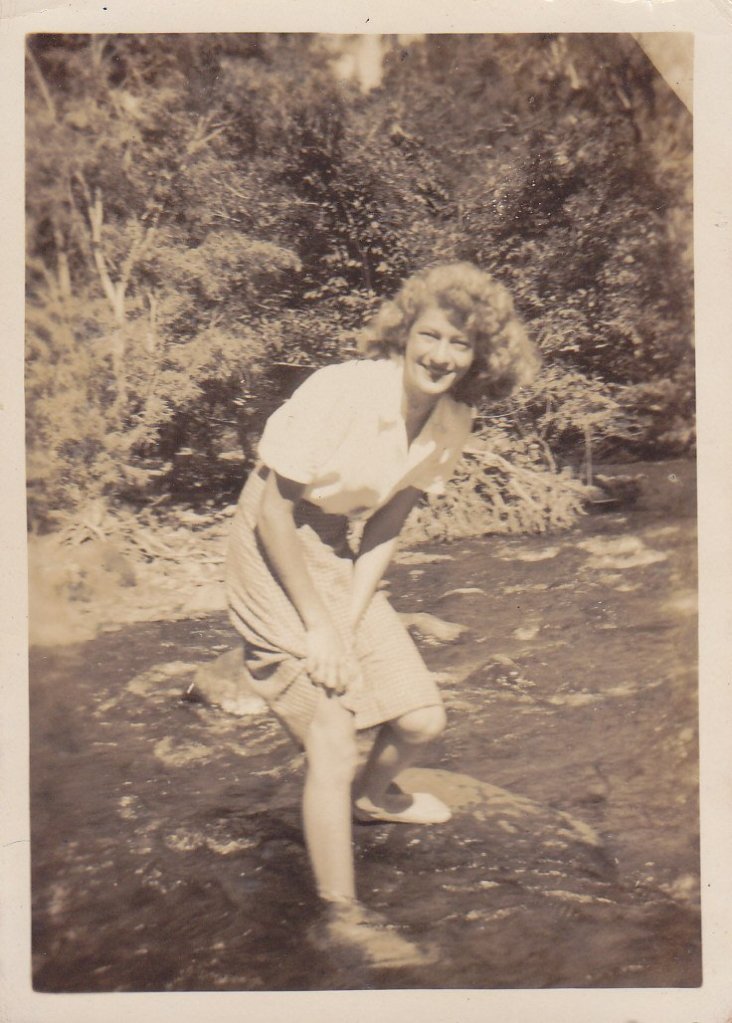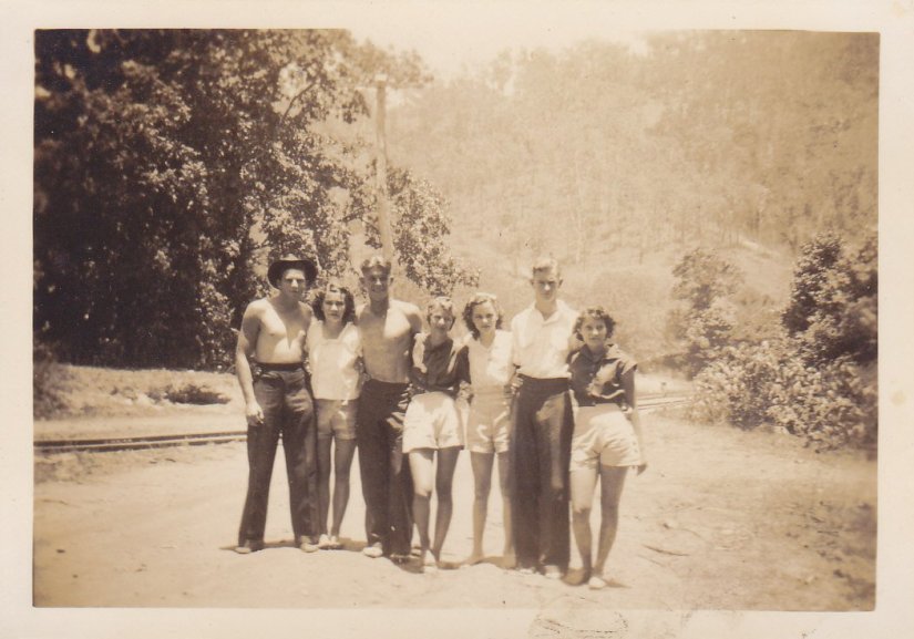 I remember being very sick when we lived in the house across the river. I had some sort of dysentery. I used to sit at the door of the kitchen, and dearly wish that the toilet, we used to call it the dunny wasn’t a mile away, which it seemed to me to be at that time. Once my brother Jimmy and some friends of his were having a swim in Station creek and I was there too. They were swimming in their shorts, so I thought that I would go for a swim too. So, I peeled everything off except my singlet, tied that through my legs and dived in. I was such a wimp. I wondered why they looked funny at me, after all I was just one of them.