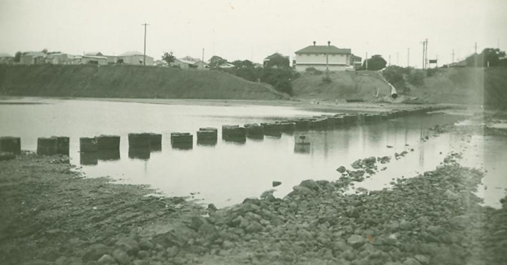 I’ll just jot down here the people I remember from across the river. The Fergusons. The Crawfords, the Greens, our milkman whose name escapes me for the moment. He had a utility from which he used to deliver the milk. I remember we went turkey shooting with him once. What a rough ride, through the paddocks over humps and bumps, but we did manage to bag a turkey or two. One day the three of us were in the big pipe which carried the drain water from the top of the river bank on the town side down to the bed of the river. We were in the pipe when we found a one-pound note, probably lost by some drunk who had camped the night there. We thought that we were made. We went to the main street, walked into a café and ordered steak and eggs. They brought it to us, and we scoffed the lot plus a milk shake. I don’t remember quite what happened after that, but the man probably told dad what had happened and we, mostly Jimmy, copped a belting. Poor Jim, because he was a boy he copped most of the hidings.